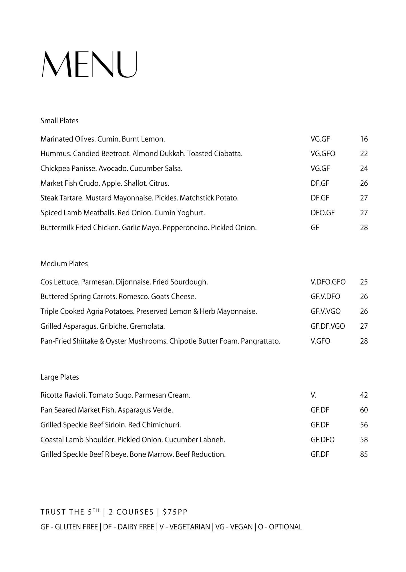 5TH STREET MENU